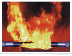 結(jié)構(gòu):以高壓鋼絲纏繞膠管為基體外皮包覆耐火涂料層、內(nèi)由阻燃層和外編不銹鋼絲所構(gòu)成。